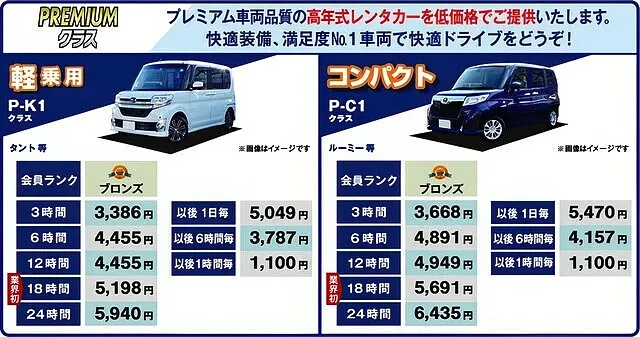PREMIUMクラス軽自動車は、3時間3,386円~