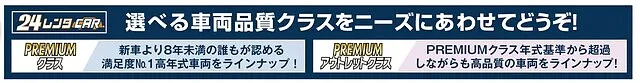 登録から8年以上経過したPREMIUMアウトレットクラスの2種類から車両品質をお選び頂けます。